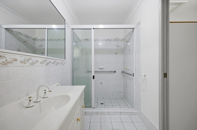 Two bedrooms are on the upper floor including a white, bright main retreat with access to the north terrace, also a walk-in robe and ensuite with spa bath.