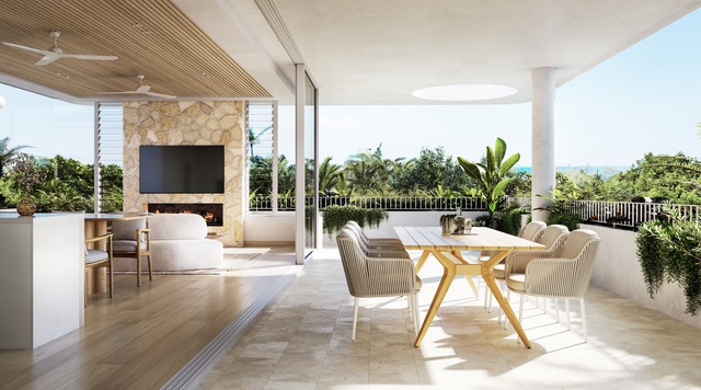 This brings cooling sea breezes, coastal views, an atrium-style internal garden, and expansive terraces with built-in outdoor kitchens.