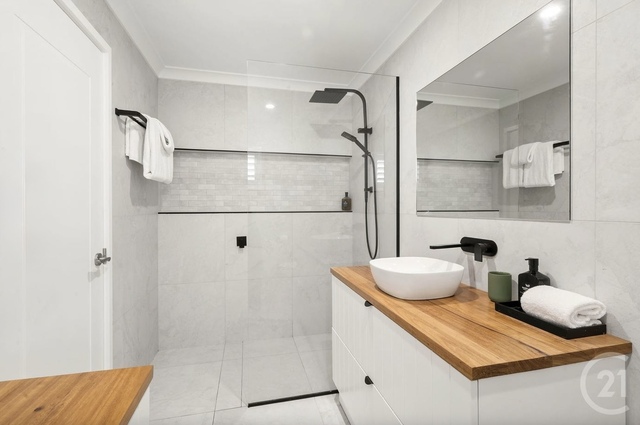 Refined fixtures are fittings elevate value and appeal, with Miele appliances and integrated fridge/ freezer, blonde oak timber doors, honed marble benches and splash backs, and brushed nickel tapware.