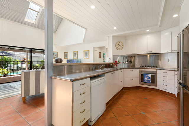 The ground level open living zone features soaring cathedral ceilings and also invites you to enjoy the adjoining north-east facing entertaining patio and lap-pool – all privately enclosed by tall, lush greenery. Excellent presentation throughout, an efficiently designed entertainers kitchen featuring stainless steel bench-tops, quality appliances, gas cooking plus abundant storage cupboards and deep drawers – what more could you wish for?