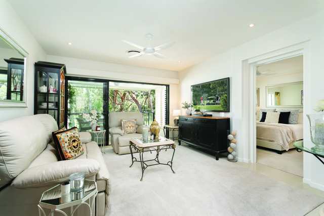 The primary outdoor entertaining area is where you’ll likely spend most of your time, enjoying the private, lush views of the golf course.