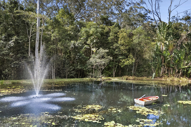 Admire the scenic sweeping driveway sculpted by botanical-like gardens more a serene hidden grove, magnificent lily-adorned lake with jetty, fringed by paperbarks, lawn and rainforest, and ahead be in awe of the substantial modernist residence poised sublimely to perfectly capture nature’s best from every angle.