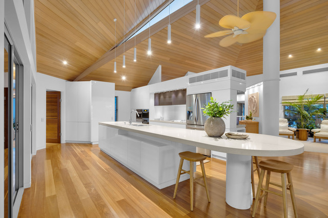 • Nine-metre vaulted ceilings, Tasmanian Oak and Blackbutt finishes