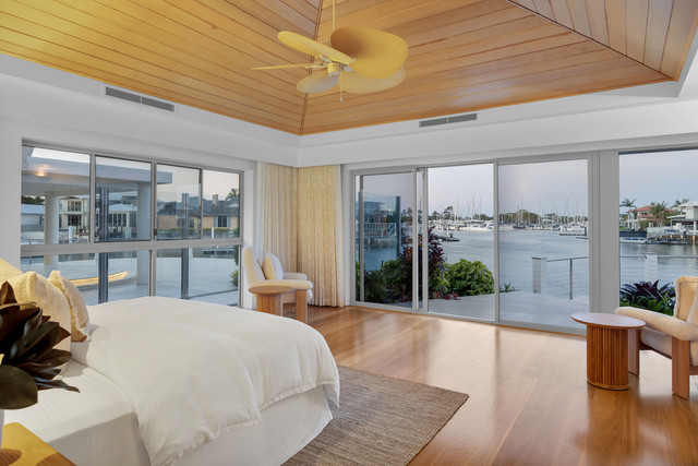 A private gated entry welcomes you through lush tropical gardens to a striking pavilion-style residence designed for light, flow, and tranquillity. The architecture celebrates its waterfront setting, with glass-lined living spaces framing sweeping water views and dissolving the line between indoors and out.