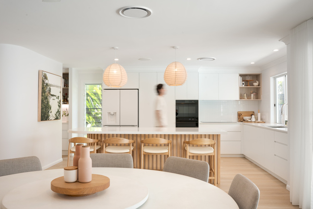 State-of-the-art 20kWh SunPower solar panels and SolarEdge solar power system (where each panel works independently), and EV charger, promote sustainable living and energy cost savings. By maximising the home’s north east orientation, spaces benefit from fantastic natural light and refreshing seaside breezes, while fans throughout, and ducted reverse cycle air conditioning allow year-round comfort.