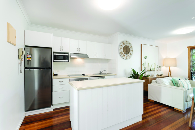 The modern contemporary furnishings include comfortable seating for additional guests. The kitchen has been stylishly renovated with a very functional island benchtop, splash back and quality appliances, offering both functionality and flair.