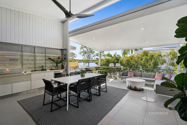 A designer home with commanding views of the Noosa River comes with sparkling pool and family-friendly lay-out.