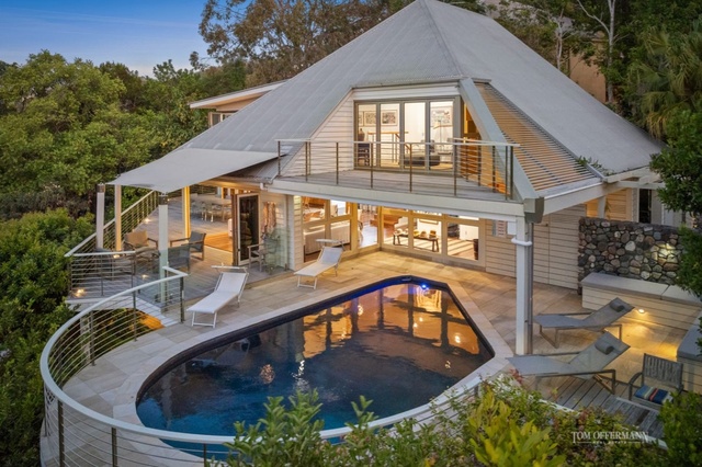 Rebekah Offermann’s listing was at 11 Duke St, Sunshine Beach, a three-bedroom, two-bathroom residence with a terrace seemingly in the treetops, a prized elevated position in the heart of Sunshine Beach, with toes-in-the sand and surf breaks galore in five minutes.