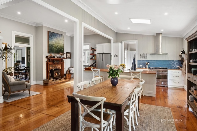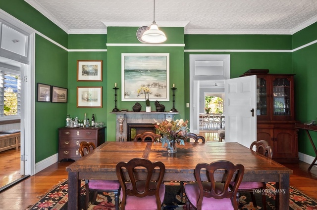Inside, there is rich, polished hoop pine flooring throughout, lofty pressed metal ceilings and light roses, retro chandeliers, VJ panelling, and casement as well as fan leadlight window panes.